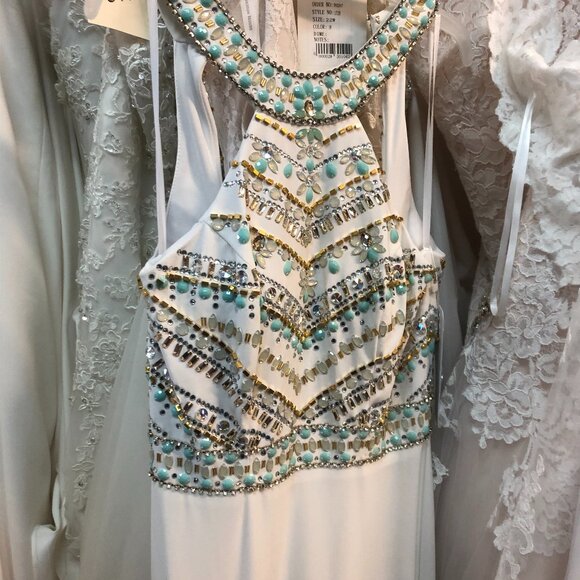 Sample New Wedding Prom Dress, Sexy Vintage BLING Halter, Keyhole Back, Cruise