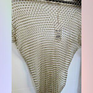 A stunning statement piece from Samsoe’s Collection 23.01. This floor-length overdress is covered in shimmering tan crystals, creating a chic and eye-catching look. Designed with long sleeves and made from an extremely stretchy fabric, it flatters and adapts to your shape for the perfect fit.
