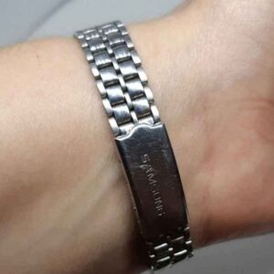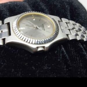 Glass has some light scratching. Battery has run out and will need replacing. Band fits approx 7".