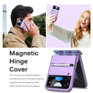 [Super Magnetic Adsorption] The Galaxy Z Flip 4 360°all-Inclusive hinge folding cover has six magnetic suction device, 150°folding automatic recovery magnetic, instantly attach the top and bottom cover of the phone tightly. The powerful magnetic adsorption makes the Samsung Z Flip 4 case seamlessly connected which always make your phone stand out among crowd.