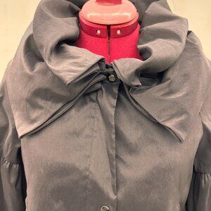 Samuel Dong Black cropped Pouf Sleeve Jacket Ruffle collar Zip/Snap Closure Sz S