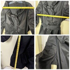 Samuel Dong Coat Dress Ruffle Collar Ruched Sleeves Shimmer Stretch Taffeta Trench Jacket