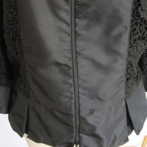 Samuel Dong lace/satin evening jacket. Color: Black. SIZE: L. (armpit to armpit measures 19.75") Chic evening jacket perfect for the holiday season. Features: