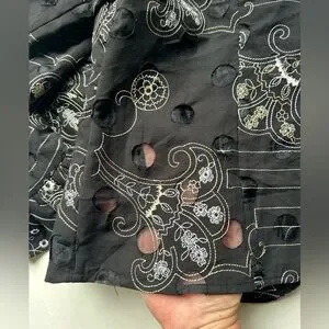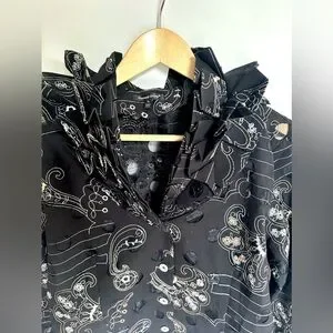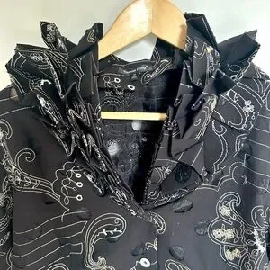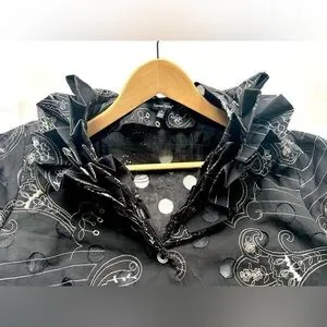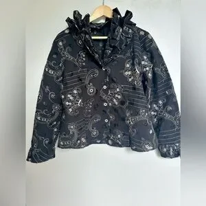 Samuel Dong Ruffled neck Button Jacket Artsy Textured Blouse
