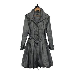 Samuel Dong Silver Gray Belted Water Resistant Bubble Hem Trench Coat size M
