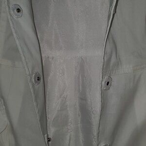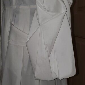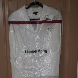 This is a beautiful Samuel Dong mid-length, lined white jacket. It has a snap closure, pockets, bubble hem and sleeves! I only worn it once or twice. In excellent condition. It is a size small.