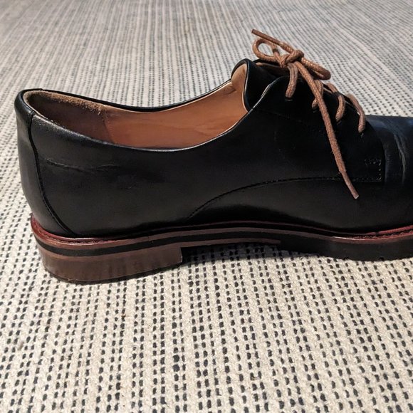 Black leather lace-up brogue-style designer shoes from Samuel Hubbard. These are in great condition with some minor wear on the rubber sole. Size 9.5.