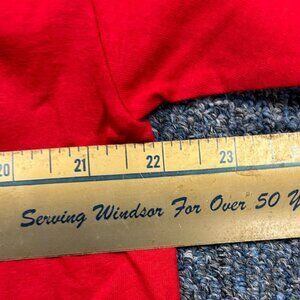 In excellent preowned shape. Not sure it has been worn. No rips or tears. Please look at the pics for measurements and compare them to your t shirts.