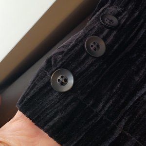 This form-fitting velour blazer can be worn with jeans or a fancy skirt. It would look amazing with the black vegan pants from my closet!