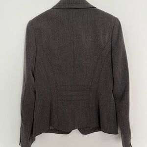 Elevate your wardrobe with this sophisticated dark gray blazer from Tahari. Perfect for professional settings or a chic casual look.