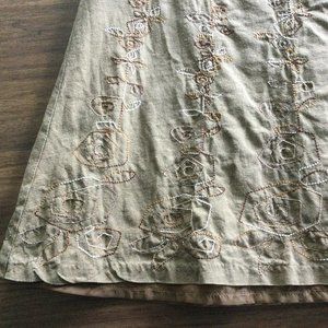 • Bold Embroidery: The intricate embroidery in shades of brown and white adds a unique and eye-catching element to this flared skirt.