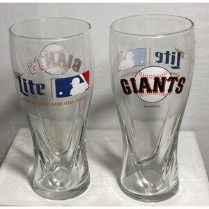 San Francisco Giants Miller Lite Beer Pint Glass 7" MLB Baseball 2015 Set of 2