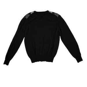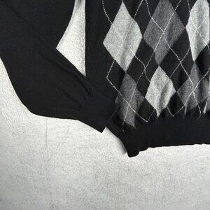 San Marco Sweater Mens M 100% Merino Wool Italy Black Grey Argyle V Neck Jumper