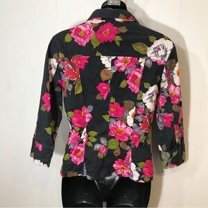 San Reno Vintage Black and Pink Floral Jean Jacket Small