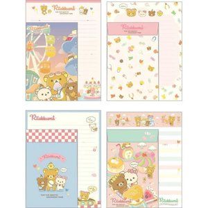 Authentic San-X Rilakkuma letter set with 4 kinds of letterhead paper with matching envelopes. Total of 24 sheets and 12 envelopes.