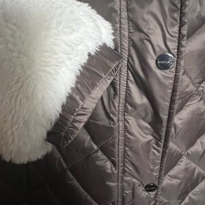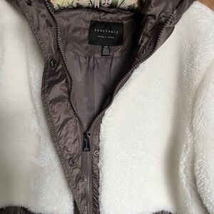 Sanctuary Brown and Cream Hooded Quilt Mixed Media Jacket - L