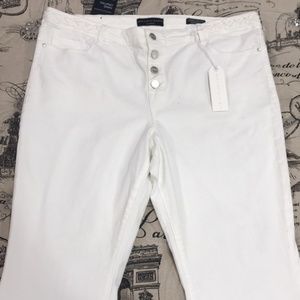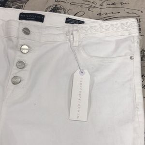 Hit refresh on your white denim look with kicky, cropped jeans, styled with a braided waist detail and fastened with silvery exposed buttons.