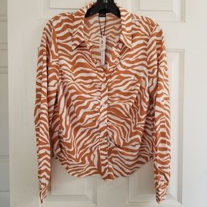 Sanctuary Orange and White Zebra Print Button Down Shirt