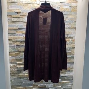 Cozy knit creates this long cardigan with an open front perfect for layering.