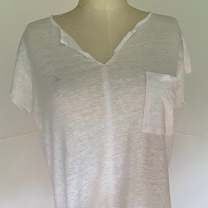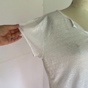Split neck white linen t-shirt