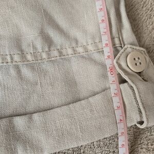 Sanctuary women’s beige tone tie‑waist 100% linen shorts with large front patch pockets, cuffed hem, and rolled tab detail. Pre-owned in a new condition.