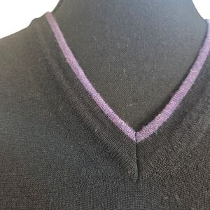 Sand 100% Merino Wool Black V-Neck Sweater With Purple Accent Size XL