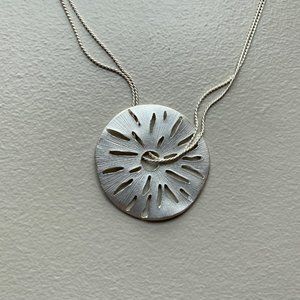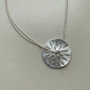This sweet tribute to nature is very metal! The sand dollar is crafted out of metal: no animals were harmed! The chain is 17" clasped, plus there's a 3 1/4" dainty dangle.