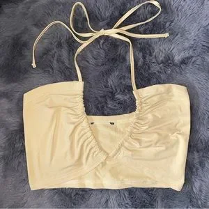 Sand coloured soft and stretchy adjustable ruched cropped tank top. Can be tied various ways. Only worn once.