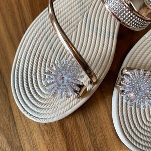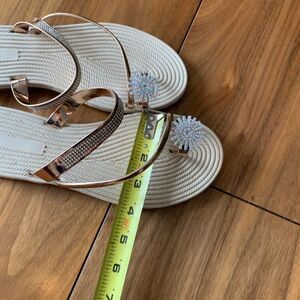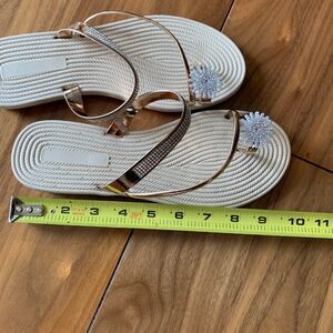 Sandal, flats, slide on, toe ring, gold metallic, sparking embellishment, new
