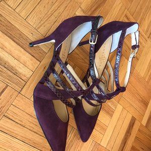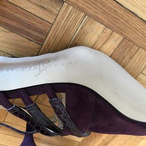 Sandale de soirée suède et cuir luisant bourgogne