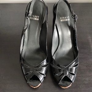 Black sling back sandals. Worn only twice. Good condition. Very comfortable considering the height. Priced low because i worn them on cement so the sole under the foot is used more than on another floor use.
