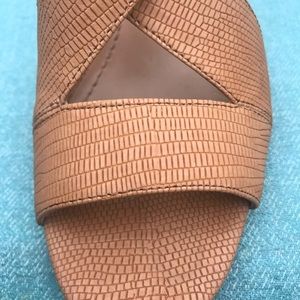 Versatile tan summer wedges from Nine West. Flattering cross straps on top, zip up heel with pull, heels are 9/10, no marks, size 8. These babies will be a staple in your summer wardrobe.