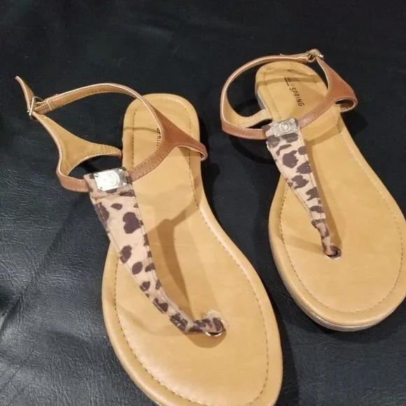 Tan sandals with a bit of Leopard print. Worn once. sz11