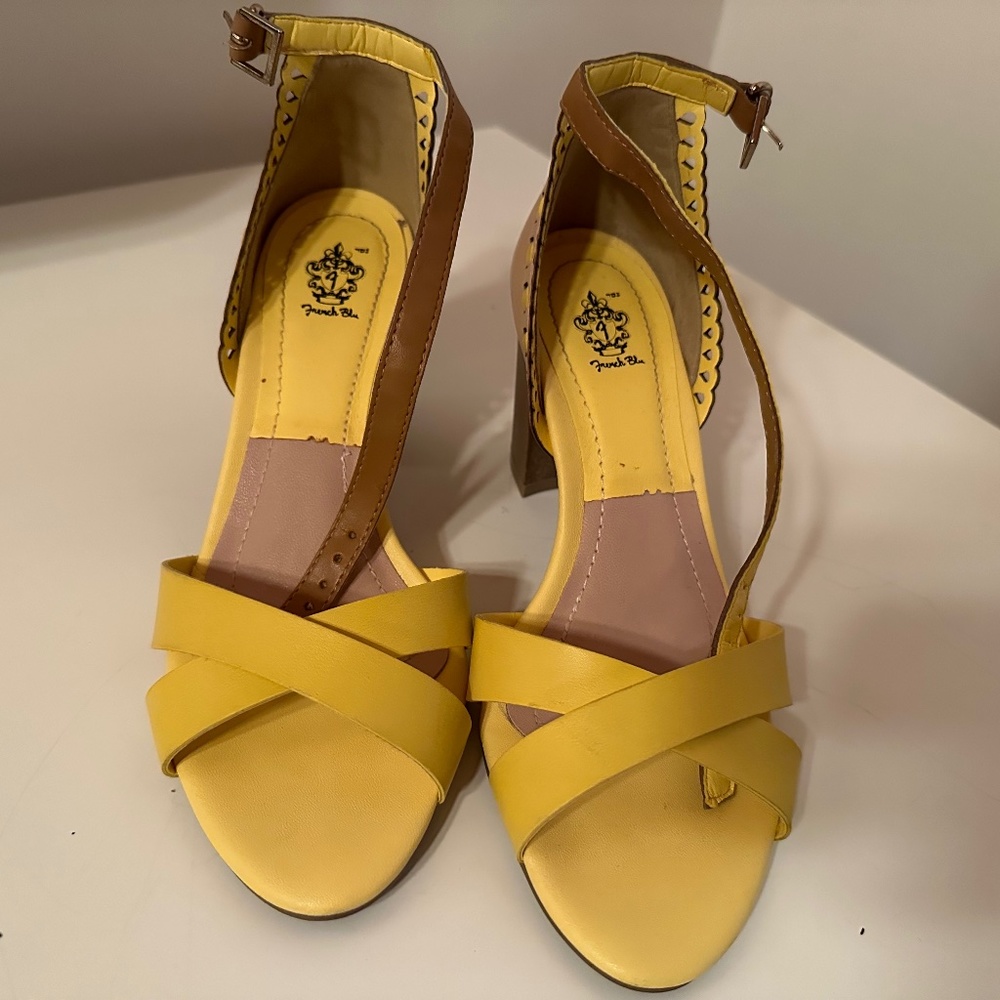 Yellow leather sandals with ankle strap, 3 inch heel
