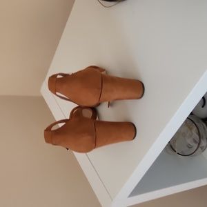 Call It Spring, size 7, mustard, block heel, 3 1/2"