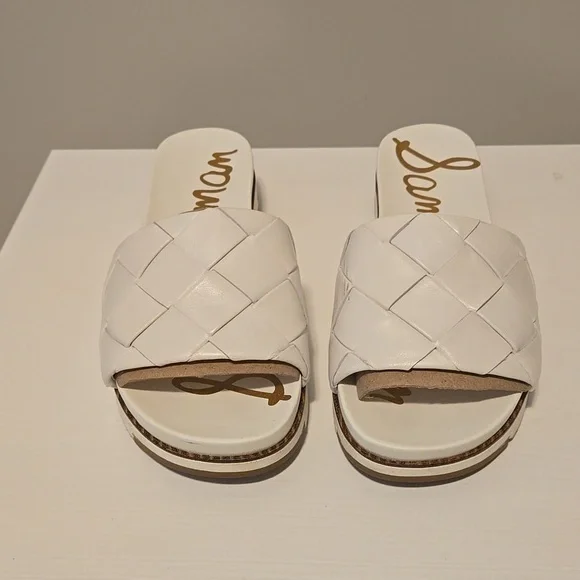 Gorgeous Sam Edelman slides. Perfect for summer, can dress up or pair with jeans. Only worn twice. Small stuff on left shoe.
