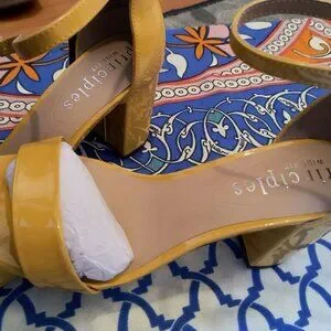 yellow elegent shade of sandals , brand new and go-to style for both casual and semi-casual wear! It has supportive heels to get a perfect balance for a long day.