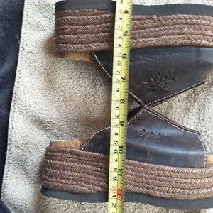 Vintage sandals. 3 inch height. Leather uppers. Size 6 possibly. Used but in fantastic condition. Cleaned and stored for 5 years.