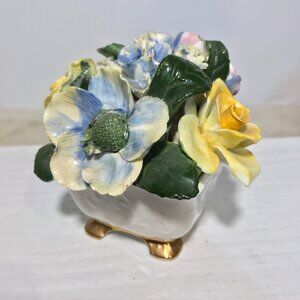 Sandford Floral Arrangement Footed 24K Gold Accents Blue Yellow England