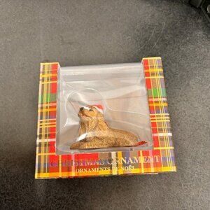 Sandicast Buff Cocker Spaniel with Santa Hat Christmas Ornament , Tan NIB