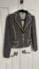 A chic and timeless two-piece suit in a navy blue and tan pattern by Sandra Angelozzi. This fully lined set combines classic tailoring with standout style—perfect for the office, events, job interviews. Buttons a bit loose just need threads to be tightened. Great condition!