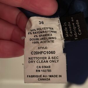 4% Spandex gives it a bit of stretch. Very classy on. Stitching forms a belt at the waist, which is very figure flattering.