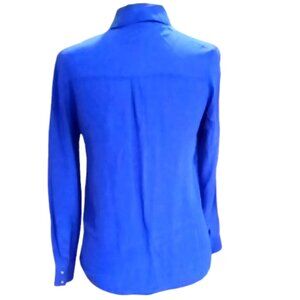 Sandra Angelozzi Blue Long Sleeved 7-Button 2-Pockets Blouse 100% Silk Size S