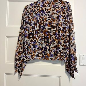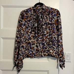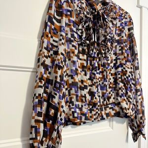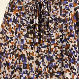 Sandra Angelozzi Women's Blouse, Multi Colour, size (42) US 10, 100% sick.Long sleeves, buttons covered with same fabric same blouse.