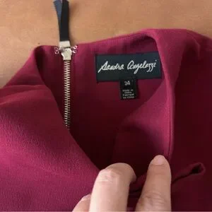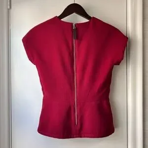Sandra Angelozzi thick slightly structured top with a little bit of stretch. Keyhole front with dainty bow tie. Zip up back with grosgrain zippered tab- wonderful edgy details. Jewel tone raspberry colour. EU 34/ US 4.