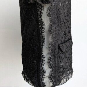 Sandra Angelozzi floral lace 3/4 sleeve semi sheer blouse