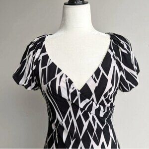 Sandra Angelozzi geometric abstract print short bubble sleeve dress