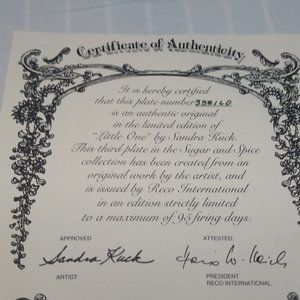This vintage decorative plate is titled - "Little One" - 3rd in plate series Sugar and Spice - No.3381L0 - Limited Edition - Reco - 1993