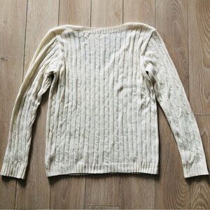 Sandra LF. Oliveira Classic Cable Knit V Neck Sweater in Off White Size M