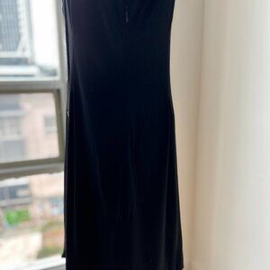 Sandro long dress with long sleeves and V-neck. Double-breasted press-stud fastening. Two pockets with piping. Invisible zip fastening on the side. Simple and chic, this dress is perfect for any occasion.